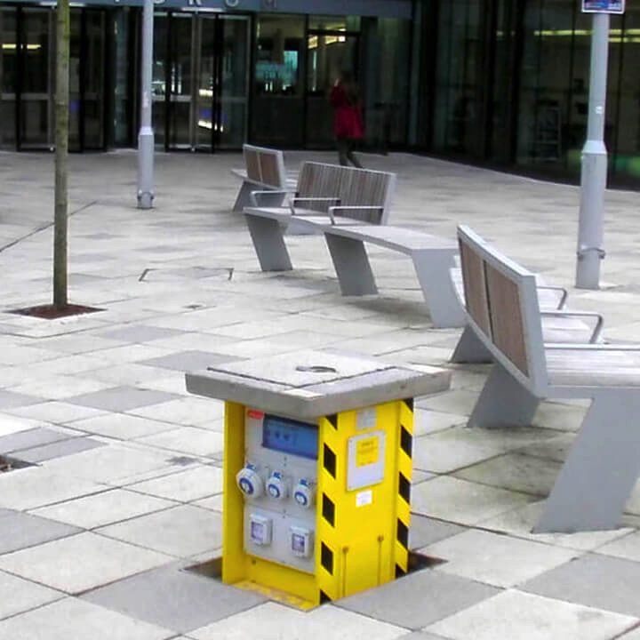 A more practical and robust solution that specifiers are favouring in recent years is a range of retractable service units from Pop Up Power Supplies®. Our collection of outdoor power units includes pop up units, in ground units, and power bollards.
