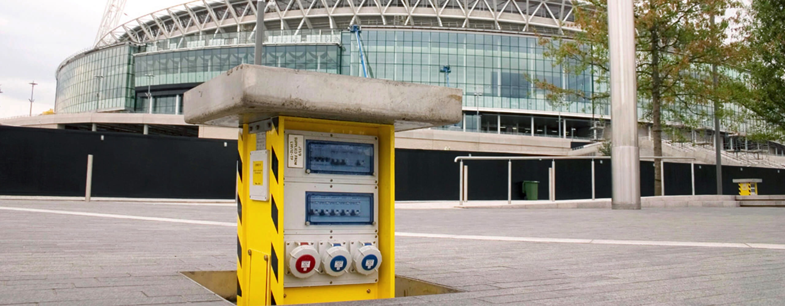 Pop Up Power Supplies® were thrilled to be asked to supply six retractable service power units here. The half ton units were required for the recreational area and were safely buried out of sight beneath the perimeter. When electricity is needed each unit can be cleverly raised out of the ground. Outside the SSE Arena, there is relaxed seating and great views of Wembley Park’s two iconic venues. Here the PUPS 01 units are used to power stands for food, drink and merchandising when events are scheduled.